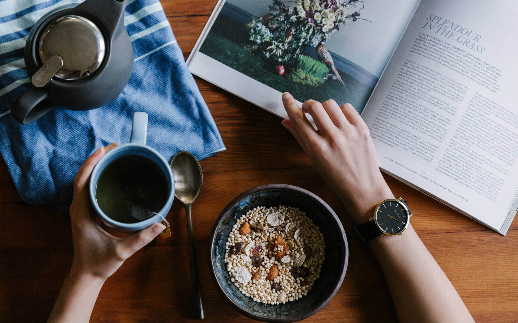 - Wasser: Trinke viel Wasser - eine uralte Weisheit, nicht wahr? Zu bestimmten Zeiten, wie morgens nach dem Aufstehen, wirkt sich das Trinken jedoch besonders positiv auf den Stoffwechsel aus.