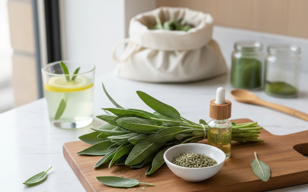 Die Blätter werden frisch oder getrocknet gerne als Tee, pur oder in Teemischungen, zum Genießen oder – wie bereits erwähnt – zum Gurgeln und zur Beruhigung der Mundschleimhaut verwendet. Darüber hinaus kommt er in vielen Zahnpflegeprodukten zum Einsatz und ist auch bei Deos ein beliebter Inhaltsstoff. Schon im Altertum wurde er außerdem zum Räuchern und Reinigen verwendet. In Haarpflegeprodukten kommt Salbei ebenso als Reinigungsmittel, vor allem bei fettigem Haar, zum Einsatz. Nur während der Schwangerschaft ist von Salbei abzuraten, da er Phytoöstrogene enthält und diese das Hormongleichgewicht beeinflussen können (vgl. Kräutersteckbrief). Außerdem ist zu beachten, dass Salbei nicht zur täglichen Verwendung über einen langen Zeitraum geeignet ist. -kw