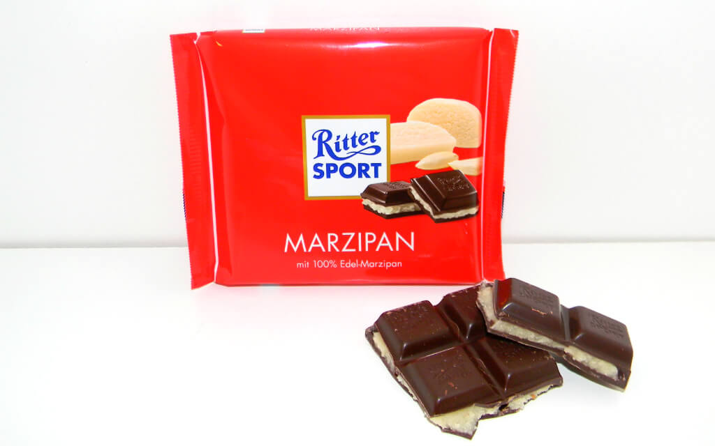 _Foto: Ritter Sport_ Durch die Produktionsbedingungen der Schokolade, die evtl. mit anderen Schokoladesorten und somit Milcherzeugnissen in Berührung kommen, kann die Schokolade jedoch "[Laktosewerte](http://www.ritter-sport.de/blog/tag/vegan/%20) von 0,4 g pro 100g Tafel" erreichen. Allergiker\*innen müssen also trotzdem aufpassen. Für alle die Produkte, die bei der Produktion mit tierischen Bestandteilen in Berührung kommen können, vermeiden ist die Ritter Sport Marzipan leider nichts. Laut der Zutatenliste ist Ritter Sport Marzipan jedoch vegan und somit eine gute Lösung für die spontane Schokolust. – JL