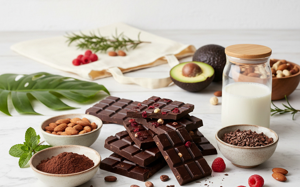 - Edelbitterschokolade bzw. Kochschokolade ist fast ausnahmslos vegan. Diese sind in jedem Supermarkt und Süßigkeitengeschäft erhältlich.