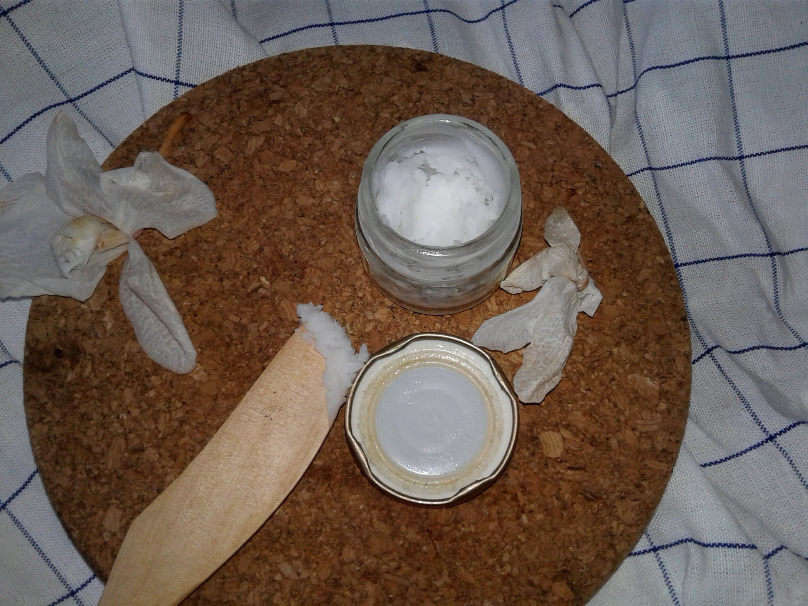 - Kokosöl muss zuerst geschmolzen werden. Dafür wird in einem Topf Wasser zum Kochen gebracht und in einer Schüssel drüber, das Öl flüssig gemacht.