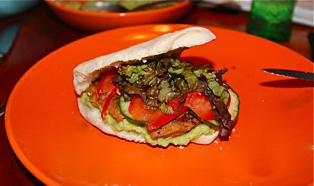 Getrocknete Sojaschnetzel, die aus gerösteten Sojabohnen bestehen und die man in fast jeder Form erhält, sind eine super Fleischalternative – auch, wenn man’s am Anfang gar nicht glaubt. Auch bei mir sind die trockenen Dinger, die nicht besonders appetitlich aussehen, wochenlang in der Speis’ versteckt worden. Doch eines langen Tages, als die Vorräte rar wurden und die Lust auf Kebab (s.Bild) groß, haben wir uns doch dazu überwunden. Und siehe da – sie schmecken hervorragend! Man bekommt getrocknete Sojaprodukte bei Prokopp, Denn's, Spar,.. und natürlich auch in veganen Versandshops! Ob in kleiner Form für Spaghetti Bolognese, als Medaillons für Kebab und kleine Vorspeisen, oder als Koteletts zum Grillen – das Trockenfutter ist fantastisch! Für die Bolognesesauce das Sojagranulat einfach in kochender Gemüsebrühe und ein wenig Sojasauce 10 min. einweichen, dann wie Hackfleisch benutzen. Die Medaillons oder Koteletts schmecken, wenn sie vorher mit einem Spritzer Sojasauce, danach mit Wasser, Pfeffer, und Gewürzen mariniert werden – gerade genug Wasser nehmen, damit die Gewürze nicht zu sehr verdünnen. Nach 10 Minuten ausdrücken, Knoblauch drüber und ab in die Pfanne – köstlich! Richtig gut stelle ich mir die Medaillons auch in Gulasch vor, wurde allerdings noch nicht ausprobiert (vorher anbraten und dann zerkleinern?). Was habt ihr für Ideen und Erfahrungberichte? pSH