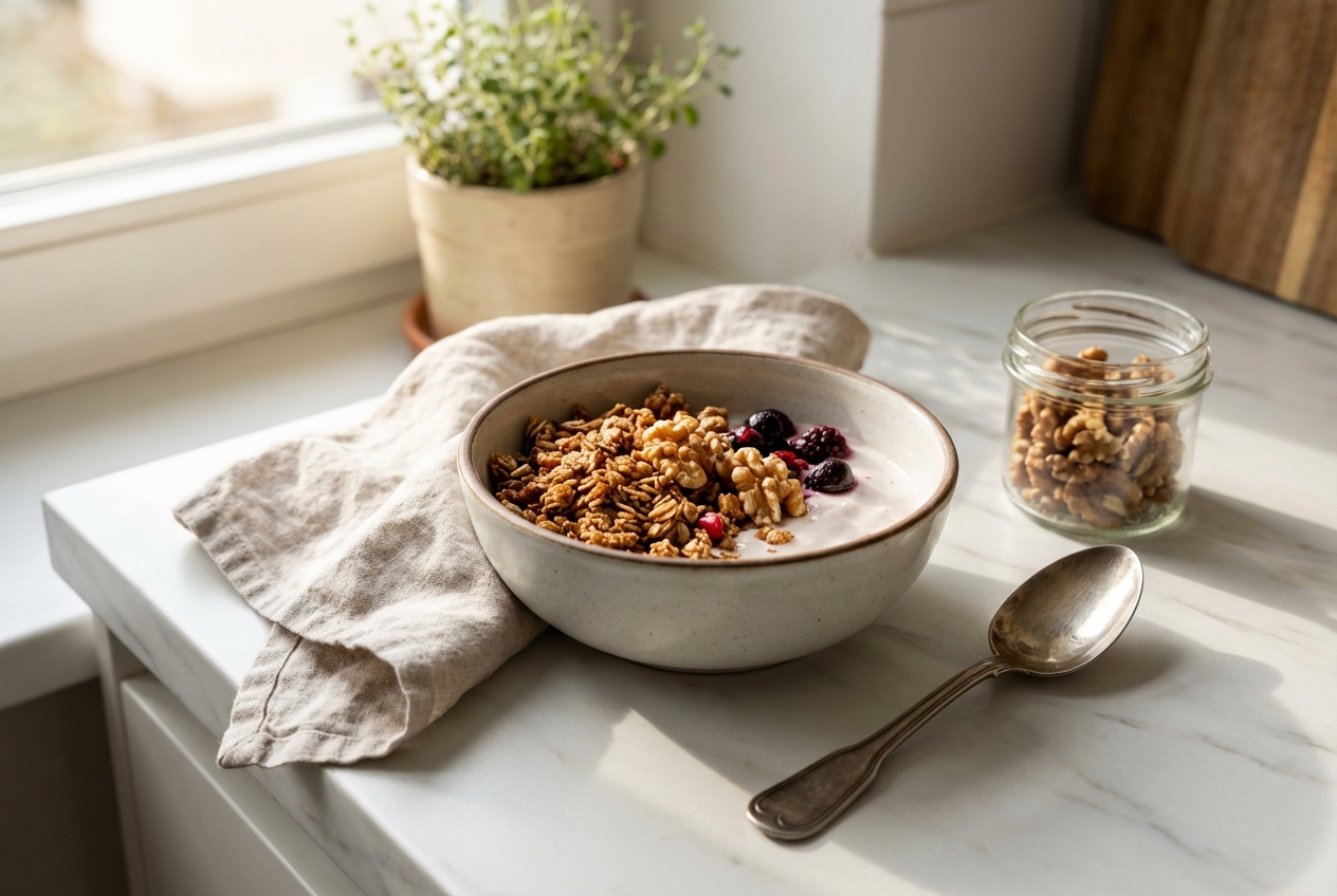 Eine Handvoll Walnüsse (etwa 30g) täglich lässt sich leicht in den Speiseplan integrieren. Du kannst sie pur snacken, ins Müsli geben oder in herzhaften Gerichten verwenden.