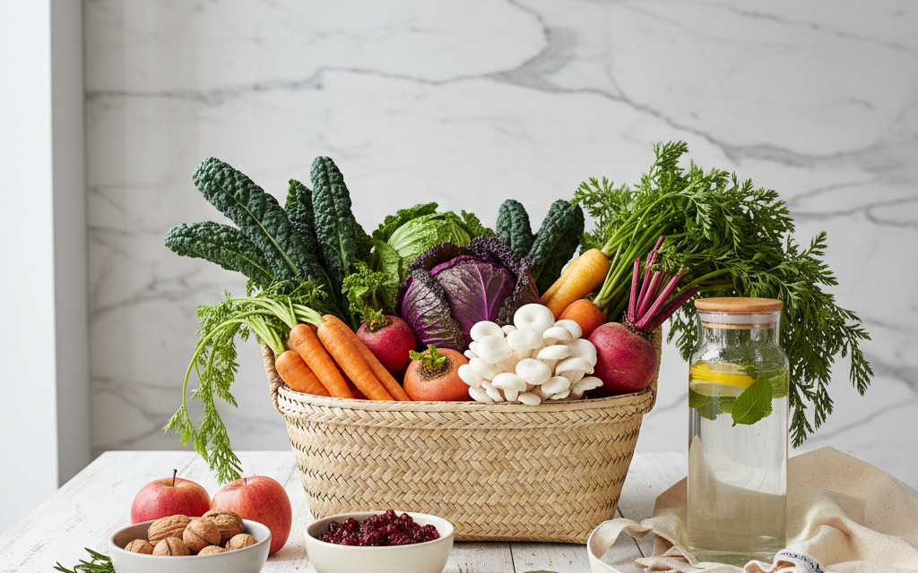 Die enthaltenen Bitterstoffe sind sehr gut für die Verdauung und das Herz- Kreislaufsystem. Am besten lässt er sich mit süßlichem Obst kombinieren, um seine herbe Note auszugleichen.Grünkohl / Kale