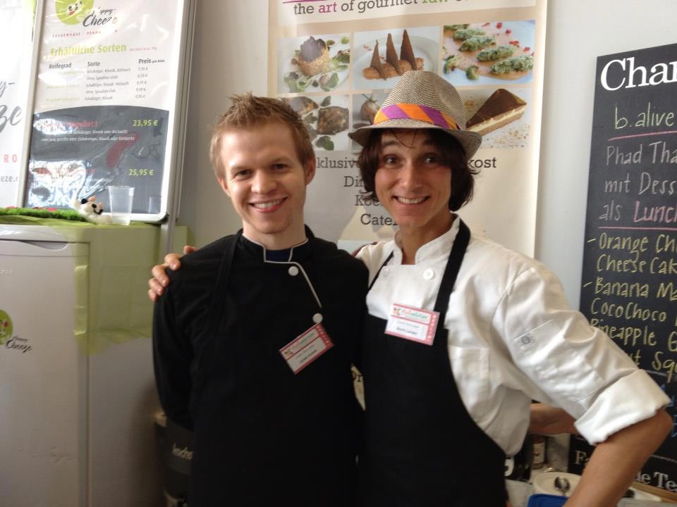 Julian Kutos ist geborener Steirer und Wahl-Berliner, zertifizierter Gourmet Raw Food Chef vom Living Light Institute in Kalifornien, Weltenbummler und arbeitet als vegetarisch veganer Rohkost Koch im Berliner Bistro Bardot. Freiberuflich bietet er außerdem Rohkostkurse an. Hier kommen seine persönlichen Berlin Tipps: Was gefällt Dir an Berlin aus veganer Sicht besonders gut? Mein persönliches Highlight, welches nicht nur jeden Pflanzenliebhaber sondern auch den aktuellen Zeitgeist widerspiegelt: vegan ist in vielen Lokalen bereits eine Option. Wo man früher nur auf ratlose Köpfe traf bzw. einen Koch der ohne die Verwendung von Milchprodukten und Fleisch nur eine Karotte parat hatte, bieten die meisten Speisekarten klar gekennzeichnete vegane Möglichkeiten oder zumindest sind die meisten Küchen bereit auf Anfrage gerne eine „fleischfreie“ Extrawurst zu machen. Damit macht Restaurant-Hopping doppelt so viel Spaß, da man auch in nicht-veganen Restaurants richtig gut essen kann. Welche Stationen sollte eine vegane Gourmet Tour durch Berlin auf alle Fälle beinhalten? Cookies & Cream: Diese versteckte Perle (jeder der einmal dort war oder die Website besucht weiß was ich meine), in einem verborgenen Hinterhof in Berlin Mitte, ist eines der kreativsten Restaurants, die Berlin zu bieten. Eine ständig wechselnde Speisekarte (die man erst im Restaurant einsehen kann!), lokale und saisonale Zutaten gepaart mit viel Liebe zum Detail und kreativen Küchenmeistern zaubern für einen fairen Preis ein Lächeln auf das Gesicht jeden anspruchsvollen Genießers. Lucky Leek: Ebenso wie das Cookies&Cream, wird man bei jedem Besuch im Lucky Leek aufs Neue überrascht. Wöchentlich und teilweise täglich findet man neue Kreationen im schönen Restaurant mit einladender Terrasse am geselligen Prenzlauer Berg. Da die Speisenauswahl bewusst minimal gehalten wird, bemüht sich das Küchenteam umso mehr, jede Kreation mit viel Raffinesse und einem besonders delikaten i-Tüpfelchen zu servieren. Goldhahn & Sampson: Vor kurzem wurde ich von einem Freund zu einem Kochkurs eingeladen. Da ich immer offen bin für neue Ideen und gerne meinen Horizont erweitere, nahm ich diese Einladung gerne an. Überrascht wurde ich von einem kleinen aber feinen Delikatessenladen, der gleichzeitig Buchhandlung für Kulinarik, Kochschule sowie als netter Treffpunkt für Hobbyküche dient. Ob vegane Thai oder Zen Küche, der „Pimp your Vegetables“ Kurs oder einer kulinarischen Reise nach Jerusalem, bietet das Goldhahn & Sampson viel Spaß, Spannung und gute Ideen auf kleinstem Raum. Die Kochkurse sind sehr intensiv, jeder schnippelt, rührt, kocht und hackt synchron um mehrere Speisen zuzubereiten, welche im Anschluss gemütlich mit erlesenen Weinen genossen werden. Kurse zu unterschiedlichsten Stilen und Küchen finden jede Woche mehrmals statt, wobei vegane und vegetarische Kurse leider nur einige Male pro Monat am Programm stehen. Abgesehen von den tollen Kursen, finde ich auch immer außergewöhnliche Zutaten (beim letzten Mal z.B. waren es Granatapfel Melasse und Rosenbalsamico Essig) und neue Lektüre zum Schmökern und Ideen sammeln im G&S. Was gibts speziell für RohköstlerInnen in Berlin zu entdecken? Das absolute Highlight für Raw Foodies ist der private Dinner Club von Boris Lauser, Berlin’s Rohkost Guru Nummer 1. In seiner stylischen Studio Loft zaubert er aus frischen biologischen Zutaten, die er mit Liebe und Sorgfalt großteils auf einem der vielen Berliner Märkte besorgt, lukullische Kostbarkeiten auf höchster Ebene. Die 4 bis 6 gängigen Dinner sind leider kein Schnäppchen, jedoch jeden Cent wert. Essen bei Boris fühlt sich an wie eine kleine kulinarische Traumwelt: man tritt ein, genießt Speisen die man meistens nicht kennt oder denkt das passt nicht zusammen, und verlässt den Abend mit dem Gedanken, ich will mich jetzt öfters roh ernähren. Sogar der ein oder andere hartgesottene Fleischliebhaber wurde von Boris eines besseren belehrt, dass kalte pflanzliche Küche alles andere als geschmacksarm und langweilig schmeckt. Dinnerclubs finden unregelmäßig statt, aktuelle Termine und die jeweiligen Gerichte finden sich auf seiner Website. Credits: Boris Lauser Aktuell die einzigen Restaurants, die Rohkost permanent auf der Speisekarte bieten, sind das Restaurant Bardot in Friedrichshain sowie das La Mano Verde am Kurfürstendamm. Von verführerischer mediterraner Küche im Bardot bis zu internationalen Leckereien im La Mano Verde überzeugen beide Restaurant mit rohköstlichen Klassikern wie Living Lasagne oder Zucchini Pasta. Wo frühstückst Du am liebsten? Wenn das Wetter passt, im Grünen. Außerhalb meiner Arbeitszeit verbringe ich sowie viele andere Berliner meine Zeit gerne im Freien. Ob am Spree Ufer, im Tiergarten, Grunewald oder an einem von vielen Seen, wer startet den Tag nicht gerne in der Natur? Berlin ist eine wahrhaftig grüne Stadt, daher ist ein grünes Fleckchen Erde meist nicht weit entfernt. Am Weg dorthin noch schnell einen Zwischenstopp beim Bäcker, Coffeeshop oder Bioladen einlegen und schon hat man alles für ein individuelles Frühstück. Welches vegane Restaurant ist Dein absoluter Favorit? Cookies & Cream, weil ich mich gerne überraschen lasse. Wo gehst Du am liebsten einkaufen? LPG, Filiale Kollwitzstraße: Wolltest du schon immer im größten Bio Markt Europa’s einkaufen? Dann nichts wie hin zu LPG in die Kollwitzstraße. Auf zwei Etagen findet ihr auf 2 Stockwerken die beste biologische Auswahl Berlin’s. Ob biologische Weine, Naturkosmetik oder eine Riesenauswahl an frischem Obst und Gemüse, einkaufen macht hier einfach richtig Spaß! Türkenmarkt Maybachufer: Einkaufsfeeling wie auf einem Bazar (inklusive vielen Gewürzen, Obst und Gemüse sowie unzähligen Sorten von Oliven), gibt es jeden Freitag und Dienstag auf diesem großem Freiluft Markt. Schnäppchenjäger, Frischeexperten sowie Gourmets werden bei einem der Dutzenden Ständen sicher fündig. Wa