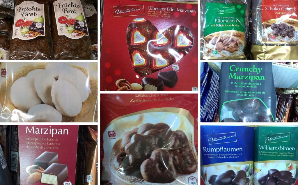 Bio-Trinkschokolade von Aldi/Hofer Früchtebrot Mini Lebkuchen Mini Schokolebkuchen Zartbitter Pfeffernüsse zartbitter Pfeffernüsse mit weißer Glasur Marzipan Kartoffeln & Edelmarzipan zartbitter Edelmarzipan & Spekulatius Lübecker Edelmarzipan Crunchy Marzipan in Zartbitterschokolade Rumpflaumen und Williamsbirnen Wintertraum Gelee & Fondant bella Dekor Habt Ihr noch mehr veganes entdeckt?