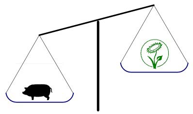 In der Biologie gibt es eine Faustregel: Ein stabiles Ökosystem benötigt pro Kilogramm einer Art etwa 10 Kilogramm Futter (Tiere oder Pflanzen) für diese Art. Durch industrielle Effizienz ist dieser Faktor bei vom Menschen konsumierten Tierprodukten zwar in der Regel wesentlich niedriger, dennoch bleiben diese aber wesentlich ressourcenaufwändiger als pflanzliche Produkte. Ein Beispiel: Für ein Kilogramm Rindfleisch werden in der Herstellung etwa 7 kg Futter (Getreide, Soja) sowie 15 000 Liter Wasser benötigt. Viele Menschen empfinden das als Verschwendung und leben daher vegan - warum Rindfleisch essen, wenn man mit denselben Ressourcen (und mit weniger Wasserverbrauch und Treibhausgasemissionen) die siebenfache Menge an Sojaprodukten haben kann, die ebensogut schmecken. Zwar gibt es zahlreiche Faktoren, die für das Welthungerproblem verantwortlich gemacht werden, doch gegen keine andere kann man als einzelner Mensch so viel tun. Häufig spielen in diesem Kontext auch Gerechtigkeitsargumente eine Rolle - sowohl gegenüber Menschen, wie auch gegenüber Tieren. Sie alle haben ein (insbesondere moralisches) Recht auf Leben und Unversehrtheit, das - so die Argumentation - schwerer wiegt als das "Recht zu essen was man möchte". -Ag