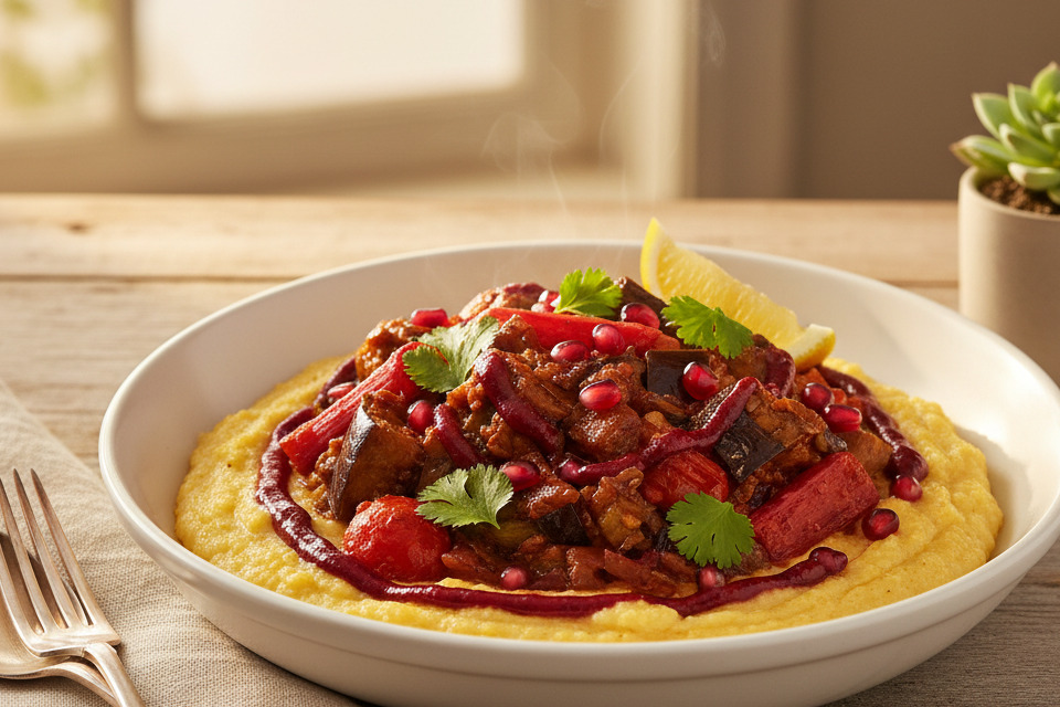 Vegane Auberginen-Gulasch mit Polenta