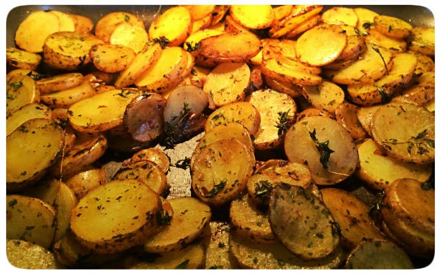 - Bei 200°C heißer Umluft für 30-45 min braten lassen. Dabei alle 10 Minuten mit einem weiteren Esslöffel Balsamicoessig "aufgießen" und gut durchmischen. Das gibt den Kartoffeln eine malzig-süße Note, die toll mit den Brataromen und Kräutern harmoniert und sorgt außerdem dafür, dass die Kartoffeln nicht am Blech anbrennen oder festkleben.