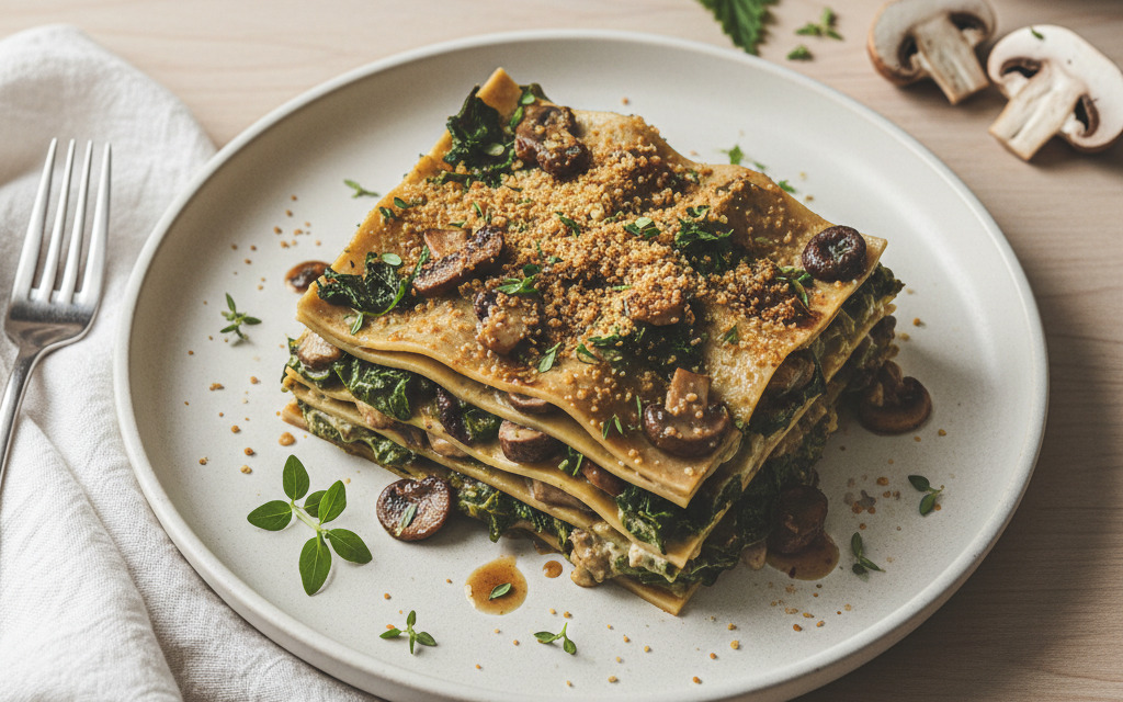 Vegane Brennnessel-Lasagne mit Pilzen