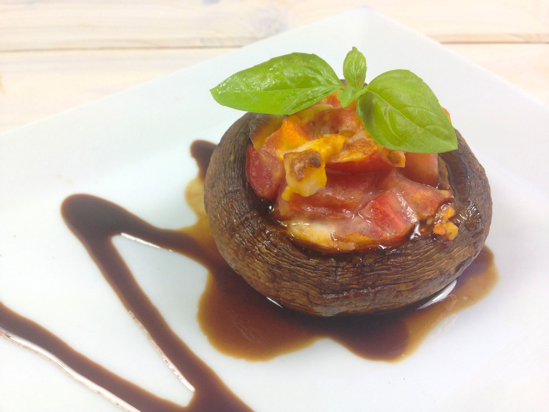 Vegane gefüllte Champignons mit Mozzarella & Tomaten