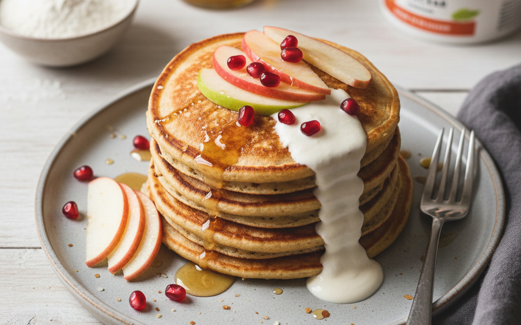Glutenfreie vegane Vanille-Pancakes mit zweierlei Äpfeln
