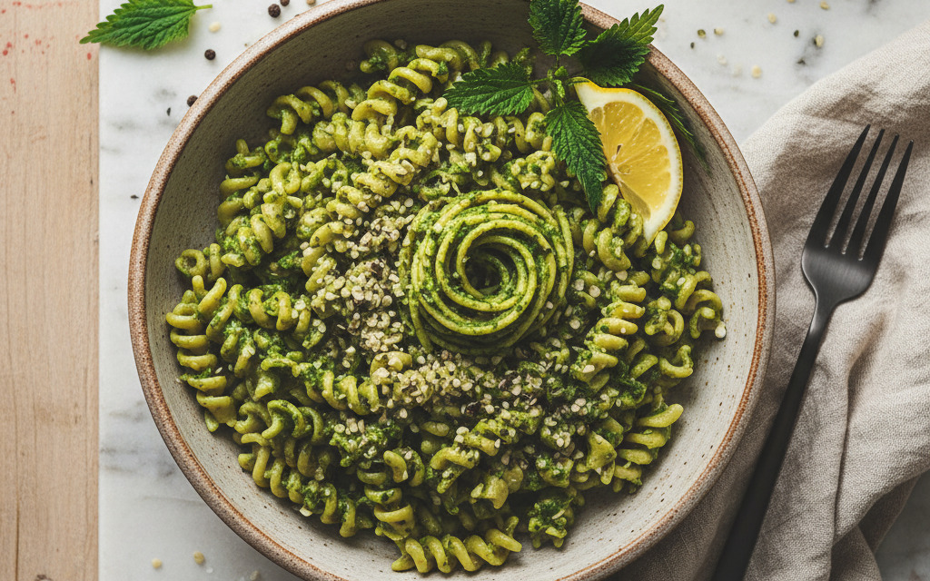 - 1 Tasse voll gewaschener Brennnessel-Spitzen (die obersten, jungen Blätter)