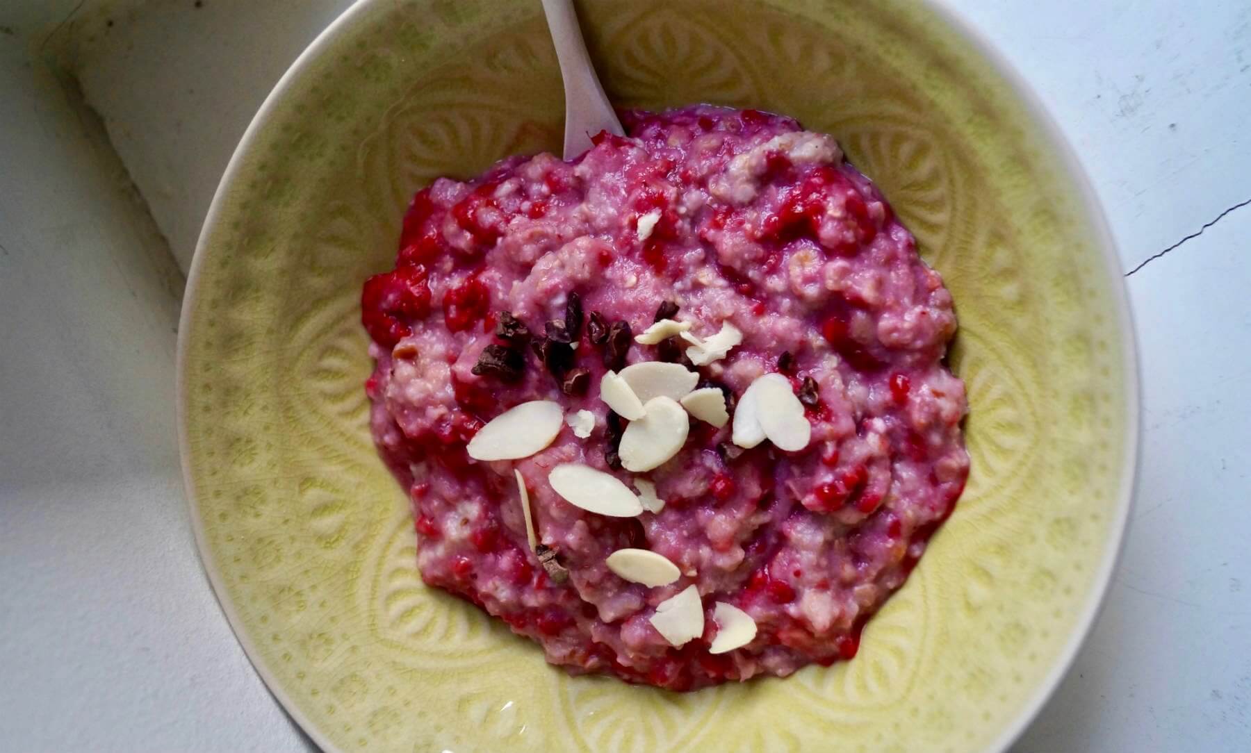 Vegane Himbeer-Porridge mit Cacao Nibs