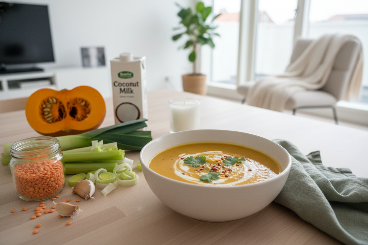 Vegane Kürbis-Kokos-Linsen-Suppe: Cremig und wärmend