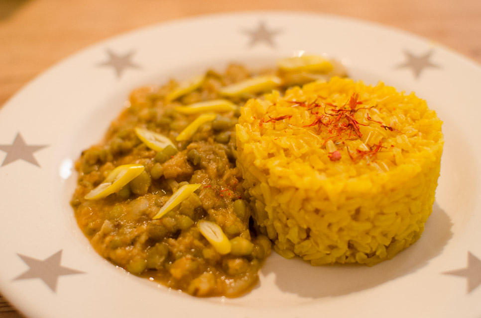 Veganes Mung-Bohnen-Dal mit Safranreis