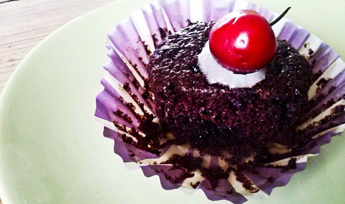 - Wir haben die fertigen Muffins mit einem Klecks Zuckerguss und einer Kirsche verziert, etwas Staubzucker tut es aber auch. …und lecker waren sie!