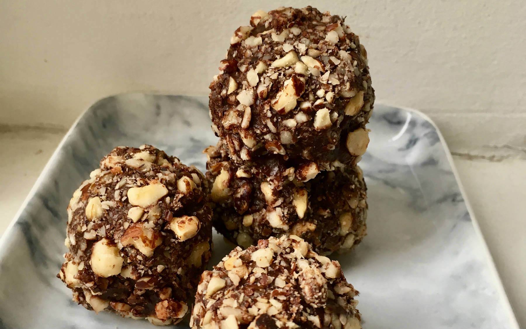 Selbstgemachte rohvegane Pralinen nach Ferrero Rocher Art