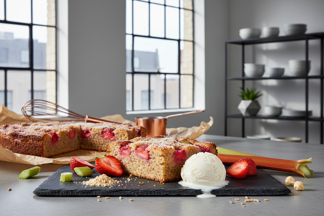 Veganer Rhabarber-Erdbeer-Blechkuchen