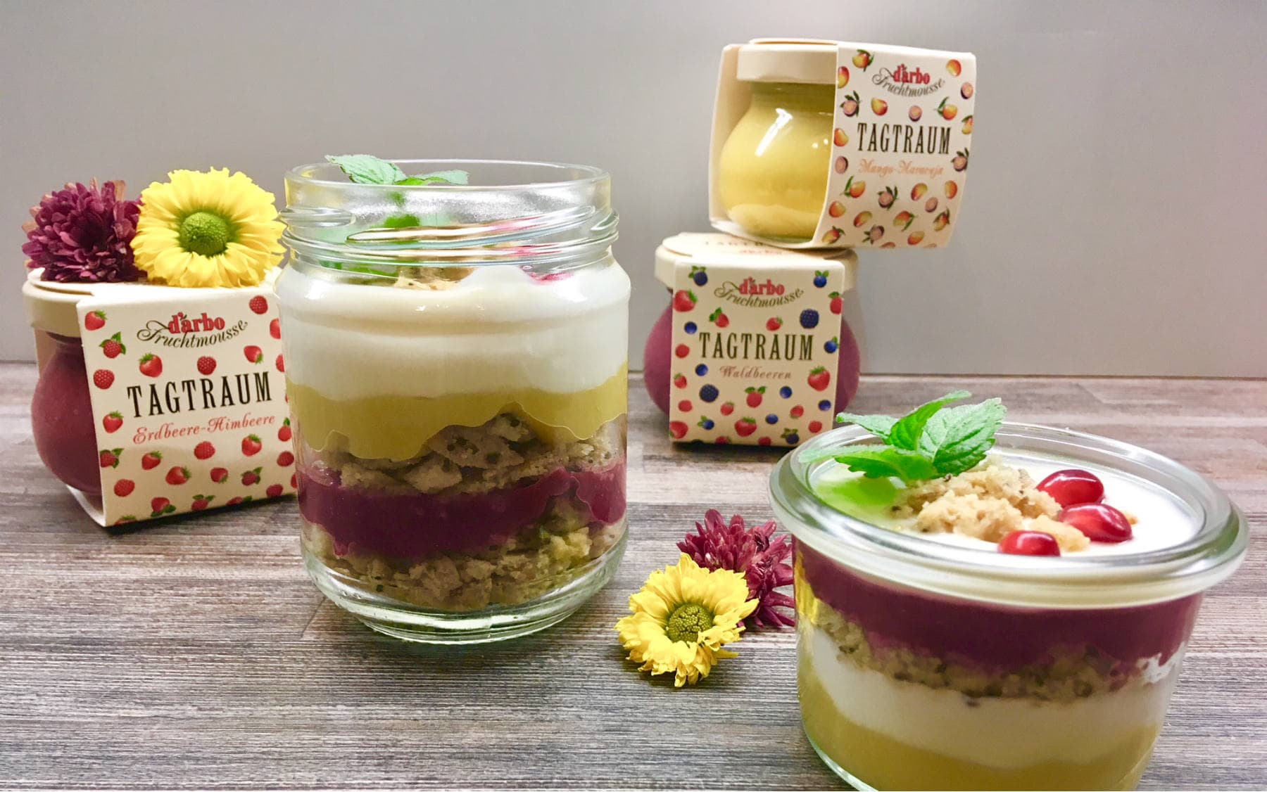 - Darauf folgt eine Joghurtschicht und darauf gleich der Darbo Tagtraum.