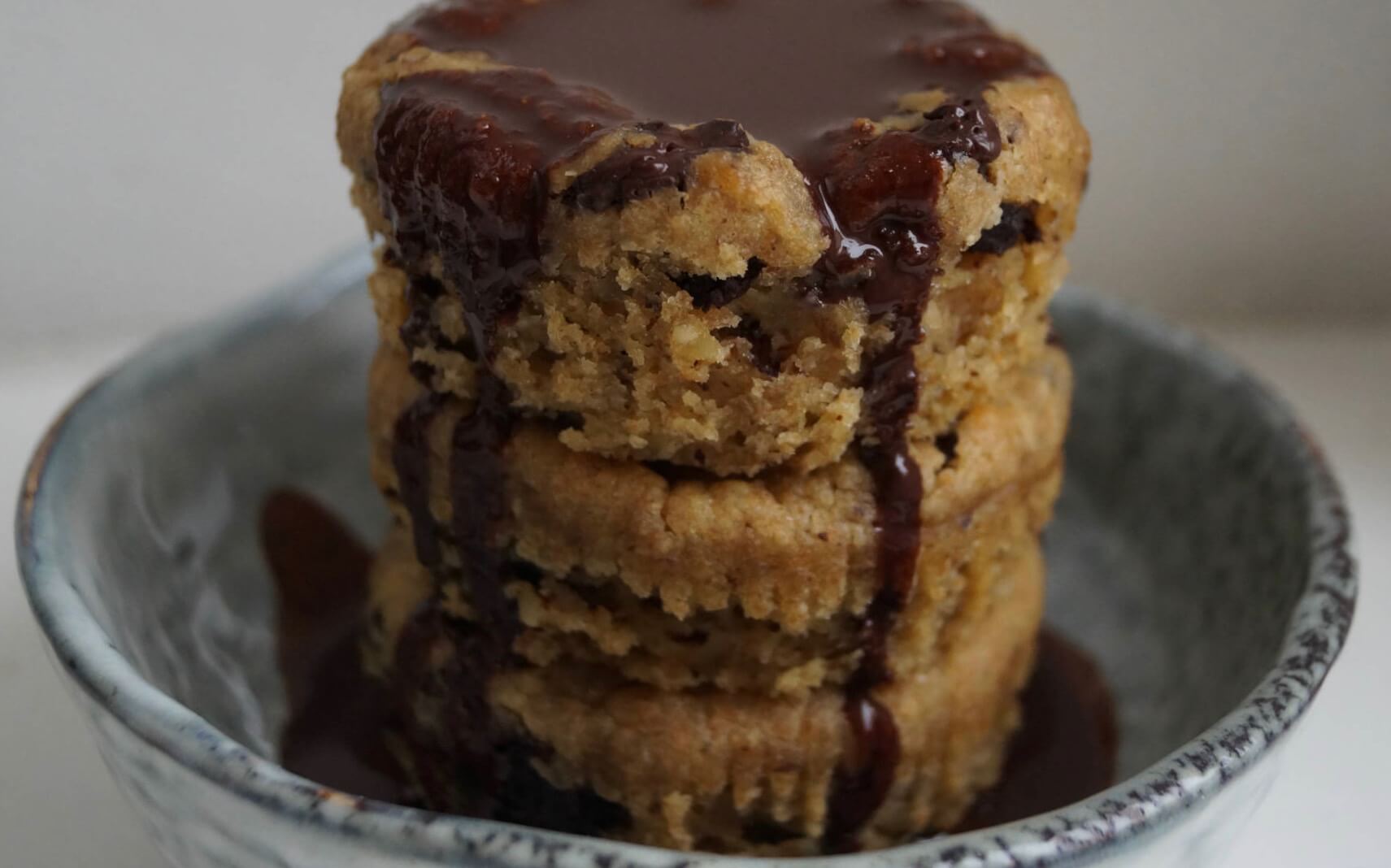 - Den Backofen auf 180°C vorheizen. In einer großen Schüssel alle trockenen Zutaten (bis auf die Schokolade) gut vermischen. In einer kleinen Schüssel die flüssigen Zutaten gut verrühren. Am besten mit einem Schneebesen, einem großen Löffel oder einer Teigspachtel die flüssigen Zutaten langsam mit den trockenen vermischen. Achte darauf die Zutaten nur vorsichtig miteinander zu vermengen und den Teig nicht zu "überrühren".