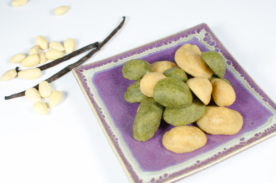 Vegane Vanille- & Matcha-Kokos-Mandeln