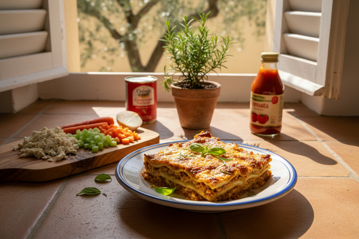 Diese vegane Lasagne ist pures italienisches Comfort Food: Schicht für Schicht aus würziger Tofu-Bolognese, samtiger Béchamel und perfekt gegarten Lasagneplatten. Ein Klassiker, der auf jedem Familientisch für leuchtende Augen sorgt!