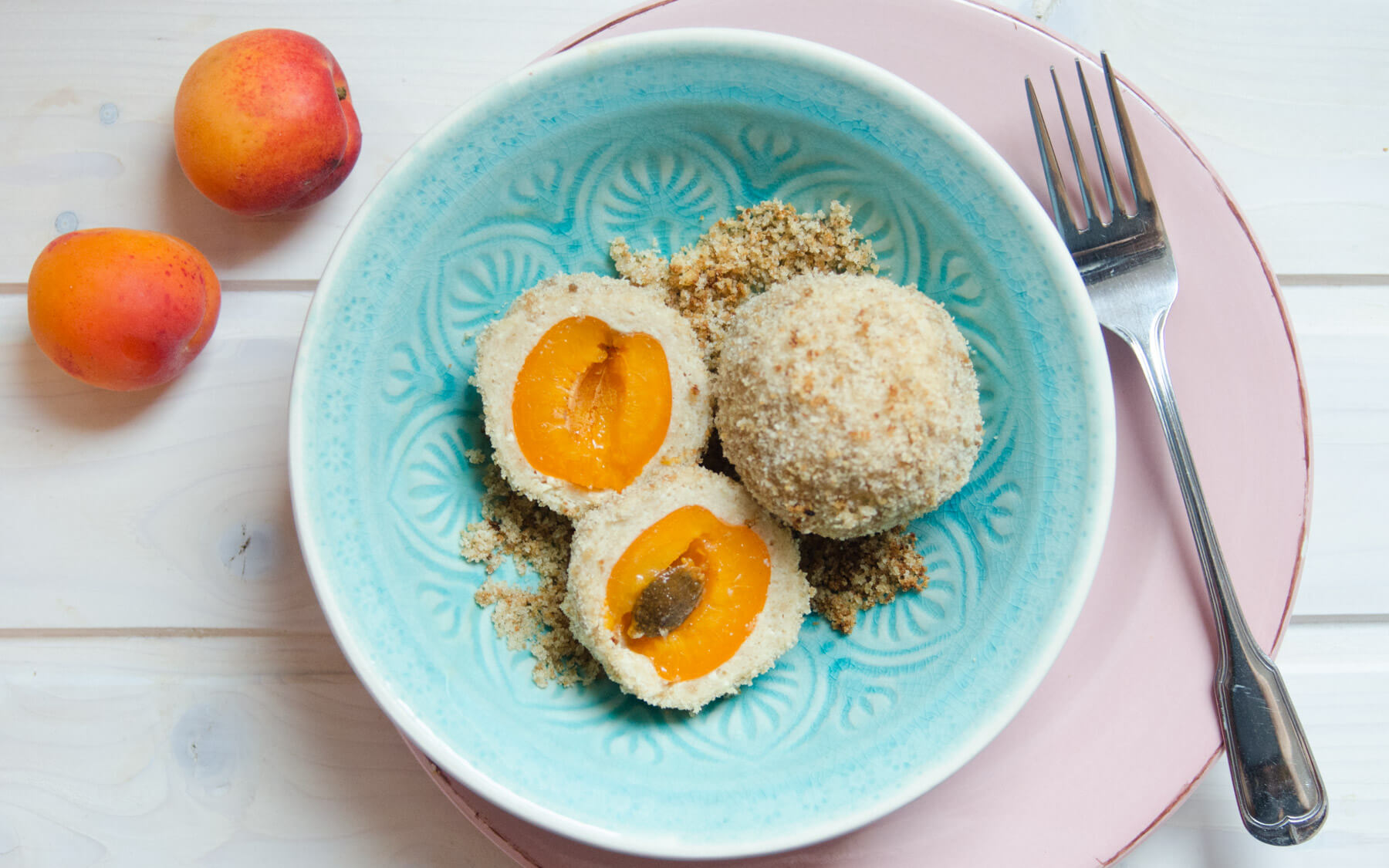 - Eine Pfanne mit ca. 3EL Kokosöl aufstellen, die Brösel mit Vollrohrzucker und Zimt darin mischen und anbraten bis sich die Brösel golden färben. Die Knödel darin wenden und servieren!