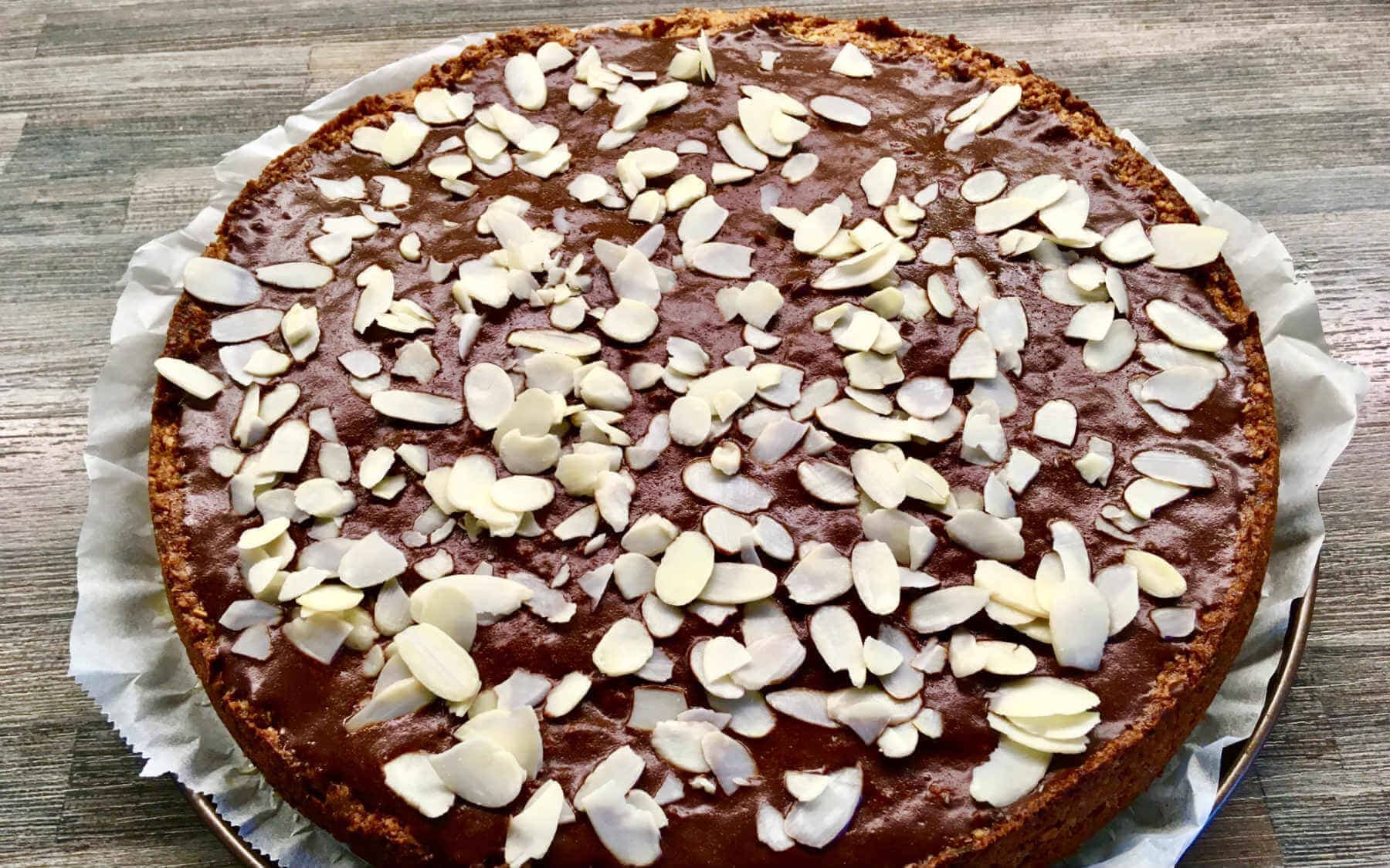 - Für die Schokoglasur die Zartbitter Schokolade und die vegane Butter in einem Kochtopf langsam schmelzen lassen. Danach über den Kuchen verteilen und nach Lust und Laune mit Mandelsplitter, Nussstückchen, Kakaonibs, etc. dekorieren und genießen.