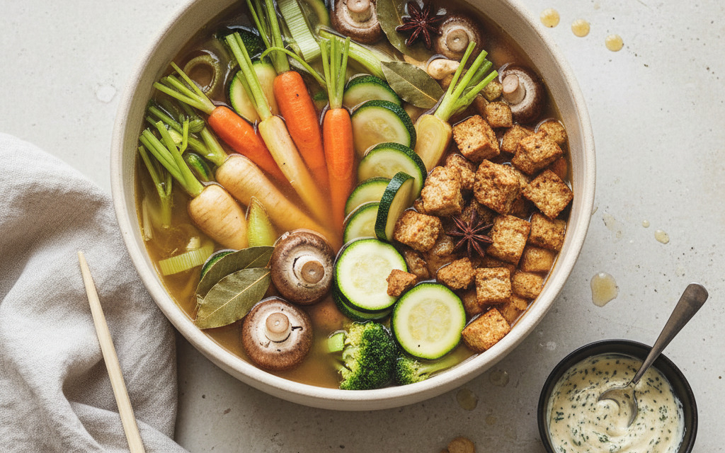 Veganes Suppenfondue