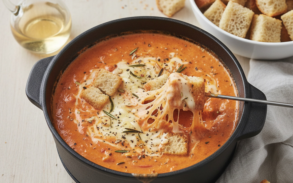 - Den Topf nun auf das Rechaud (Tischkocher) stellen und los geht`s: Baguettewürfel aufspießen, eintunken und genießen!