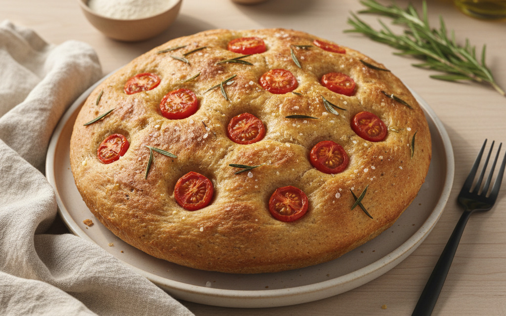 Vegane Vollkorn-Focaccia mit Tomaten und Rosmarin